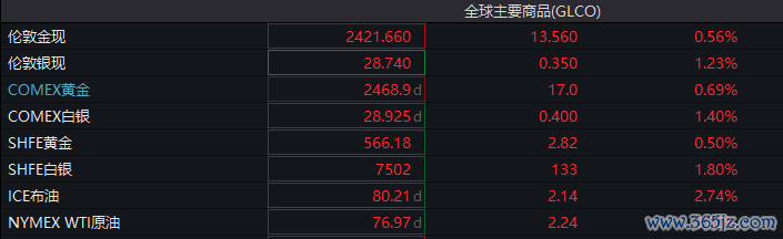 除了美股以外,全球金融市场今夜都表现较为强势,截至发稿,伦敦金现涨0.56%,COMEX黄金涨0.69%,伦敦银现涨1.23%,COMEX白银涨1.4%,布油涨2.74%,美油涨3%。此外,欧股也普遍上涨。
