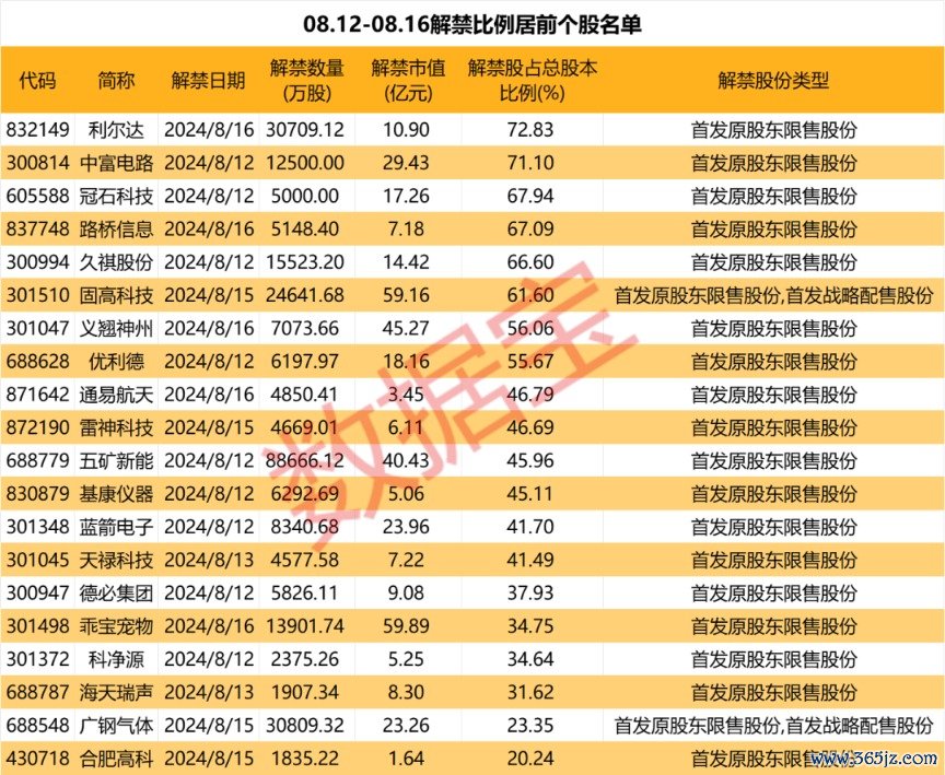 下周,A股有50家上市公司限售股解禁,市值合计517.76亿元。