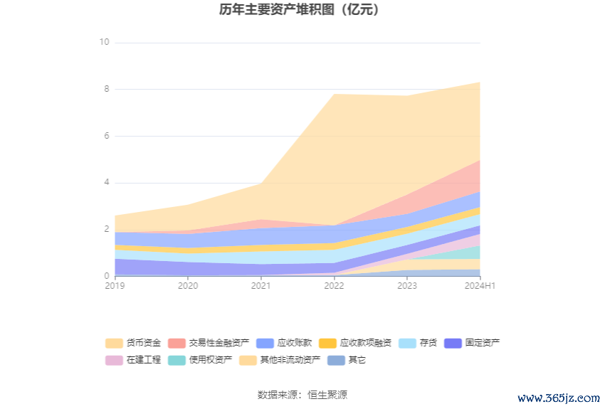 资产重大变化方面,截至2024年上半年末,公司货币资金较上年末减少21.22%,占公司总资产比重下降14.75个百分点;交易性金融资产较上年末增加62.61%,占公司总资产比重上升5.46个百分点;在建工程较上年末增加107.48%,占公司总资产比重上升2.85个百分点;应收账款较上年末增加20.30%,占公司总资产比重上升0.83个百分点。
