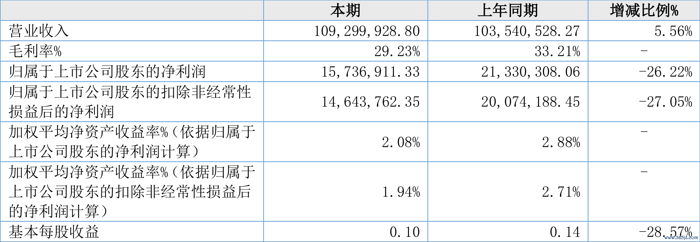 纬达光电(873001)8月16日披露2024年半年度报告。2024年上半年,公司实现营业收入1.09亿元,同比增长5.56%;归母净利润1573.69万元,同比下降26.22%;扣非净利润1464.38万元,同比下降27.05%;经营活动产生的现金流量净额为1318.46万元,同比下降37.18%;报告期内,纬达光电基本每股收益为0.1元,加权平均净资产收益率为2.08%。