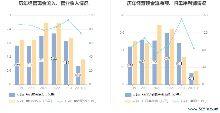 2024年上半年,公司营业收入现金比为74.51%,净现比为83.78%。