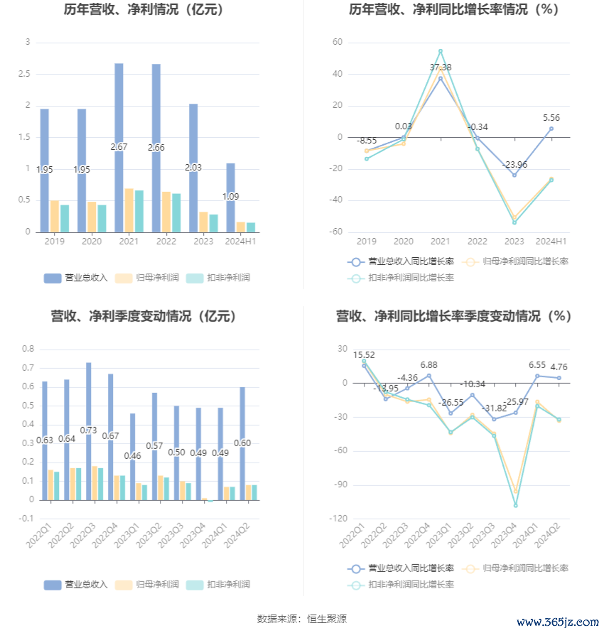 根据半年报,公司第二季度实现营业总收入5997.18万元,同比增长4.76%,环比增长21.58%;归母净利润843.26万元,同比下降33.09%,环比增长15.45%;扣非净利润798.23万元,同比下降32.00%,环比增长19.83%。