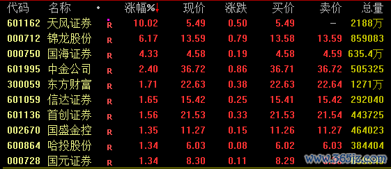 券商板块午后震荡上扬,截至收盘,天风证券涨停,锦龙股份涨超6%,国海证券涨逾4%,中金公司、东方财富等均有所拉升。