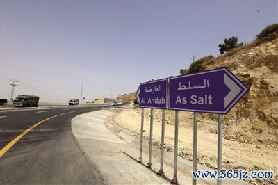 这是5月27日在约旦萨尔特拍摄的萨尔特公路指示牌股票杠杆配资公司。中国援约旦萨尔特公路升级改造项目主体工程完工仪式当日在约旦中西部城市萨尔特举行。