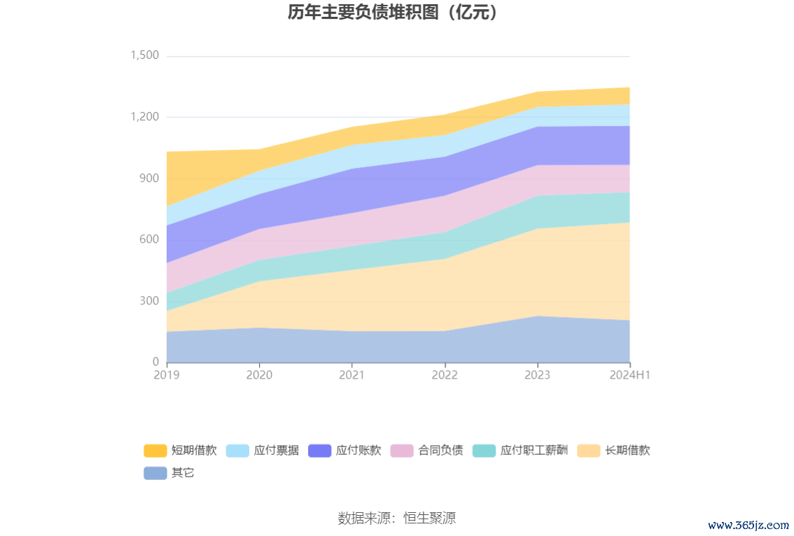 负债重大变化方面,截至2024年上半年末,公司长期借款较上年末增加12.13%,占公司总资产比重上升2.04个百分点;应付短期债券较上年末减少70.07%,占公司总资产比重下降1.76个百分点;其他应付款(含利息和股利)较上年末增加64.92%,占公司总资产比重上升1.18个百分点;合同负债较上年末减少10.98%,占公司总资产比重下降0.96个百分点。
