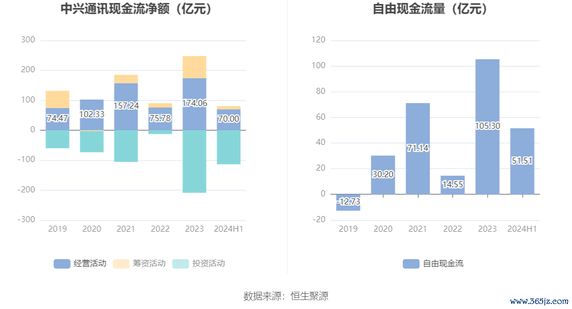 进一步统计发现,2024年上半年公司自由现金流为51.51亿元,上年同期为-3.56亿元。