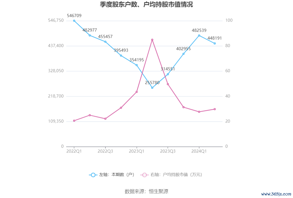筹码集中度方面,截至2024年上半年末,公司股东总户数为44.82万户,较一季度末下降了3.43万户,降幅7.12%;户均持股市值由一季度末的27.73万元上升至29.83万元,增幅为7.57%。