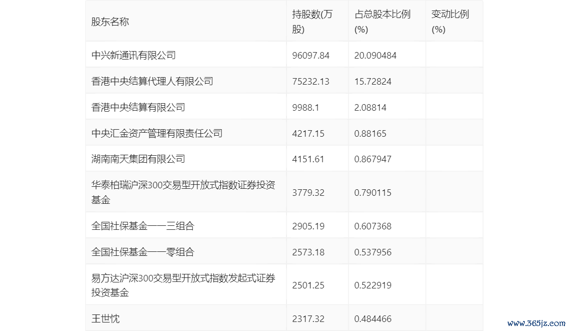 半年报显示,2024年上半年末公司十大流通股东中,持股最多的为中兴新通讯有限公司,占比20.09%。十大流通股东名单相比2024年一季报维持不变。在具体持股比例上,香港中央结算代理人有限公司、香港中央结算有限公司、华泰柏瑞沪深300交易型开放式指数证券投资基金、全国社保基金一一零组合、易方达沪深300交易型开放式指数发起式证券投资基金、王世忱持股有所上升,全国社保基金一一三组合持股有所下降。