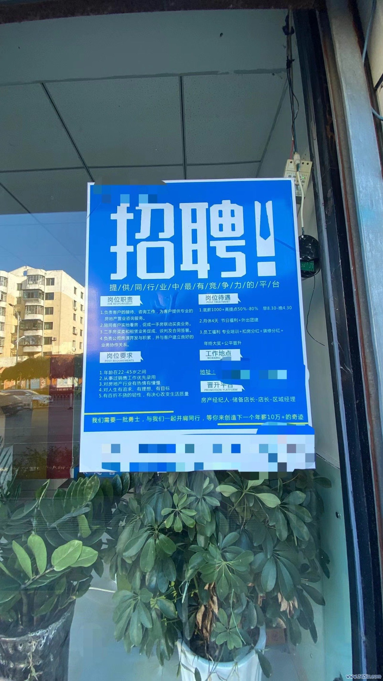 铁岭一家房产中介的招聘广告,岗位待遇为底薪1000元时代周报李杭/摄